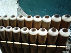 Estas Zampoñas Toyos están "anillados" para facilitar el soplido y sea mas fácil sacar el sonido natural de las mismas y pesan como 4 kilos.